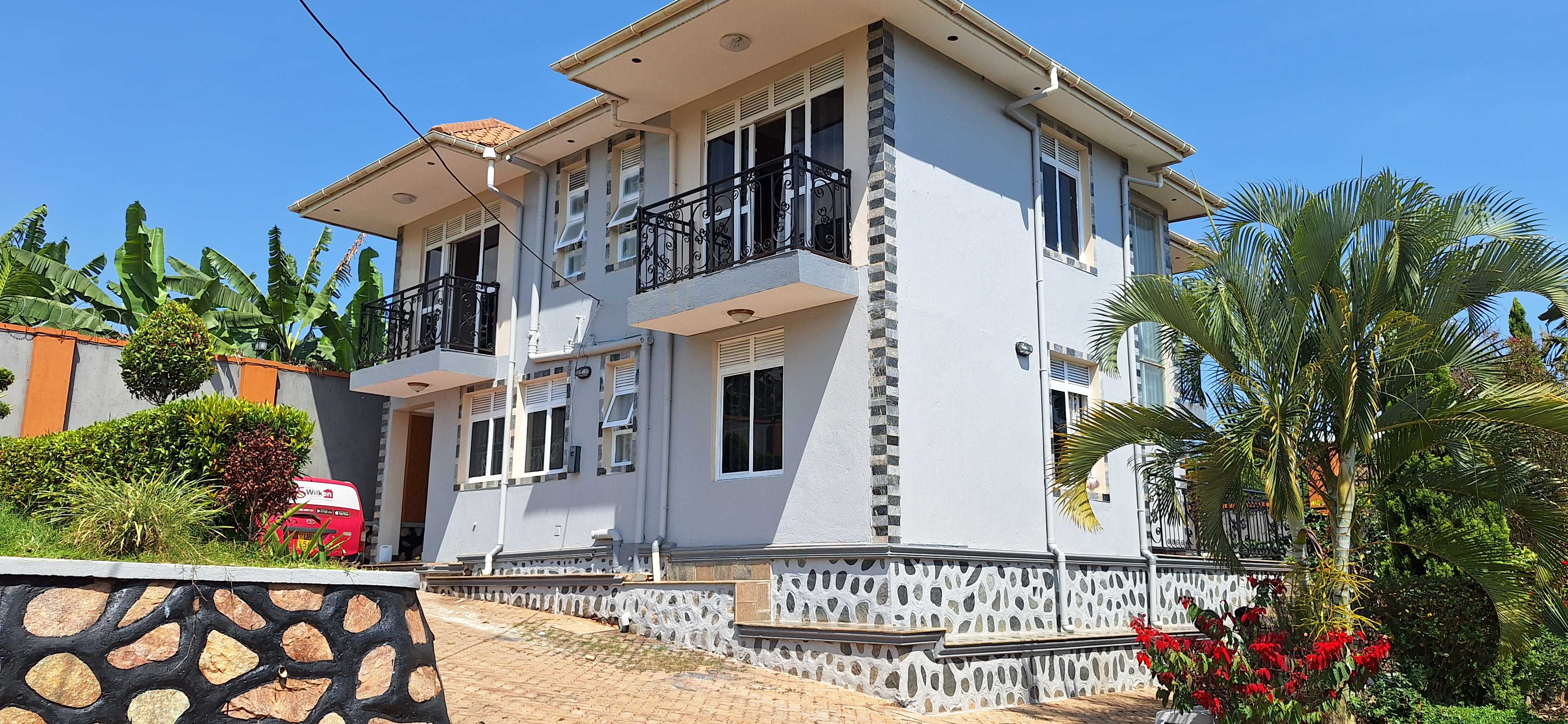 Storied house with 4 bedrooms, 4 bathrooms, a spacious sitting and dining room, laundry space, 4 balconies, and a modern kitchen. The property constitutes of 1 servant quarter, ample parking space, garden and a green compound. Its 200metres off kigo-lweza road lake view crescent. .