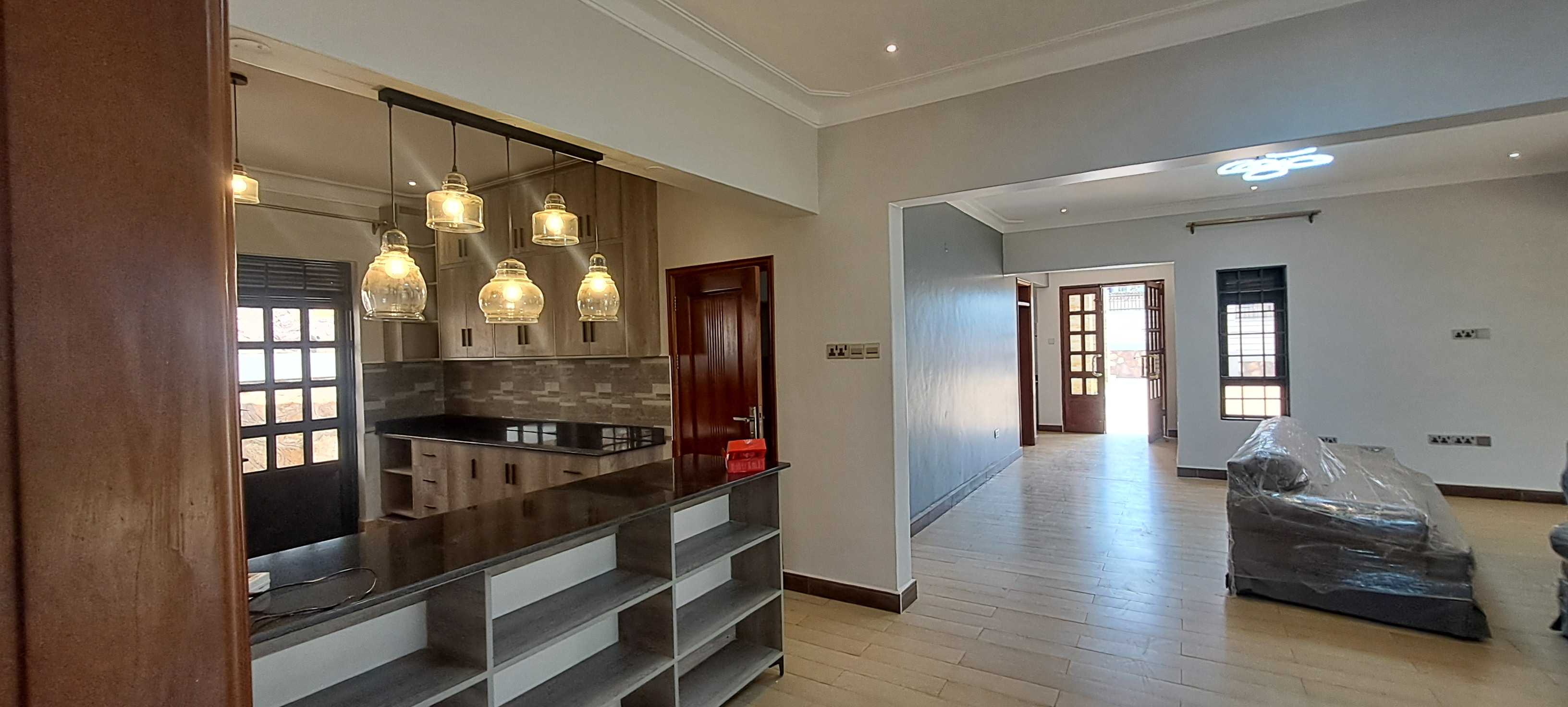 A modern 4-bedroom bungalow located in kira – kitikifumba 500metres off kira – kasangati road. The property combines sleek, contemporary design with functional living spaces, offering comfort and style in a single-story layout. The exterior features a green compound, and spacious parking space. It boosts of an open-concept floor plan, a spacious living room, dining area, and kitchen that flow effortlessly into one another, creating a perfect space for both relaxation and entertaining. The kitchen is equipped with high-end appliances, a breakfast table, and ample storage. Each of the four bedrooms is generously sized, offering privacy and comfort. The master suite features a walk-in closet, and an access to the shade. The other bedrooms are all en-suite and are ideal for family members, guests, and other similar forms of usage. To let at $1300USD..